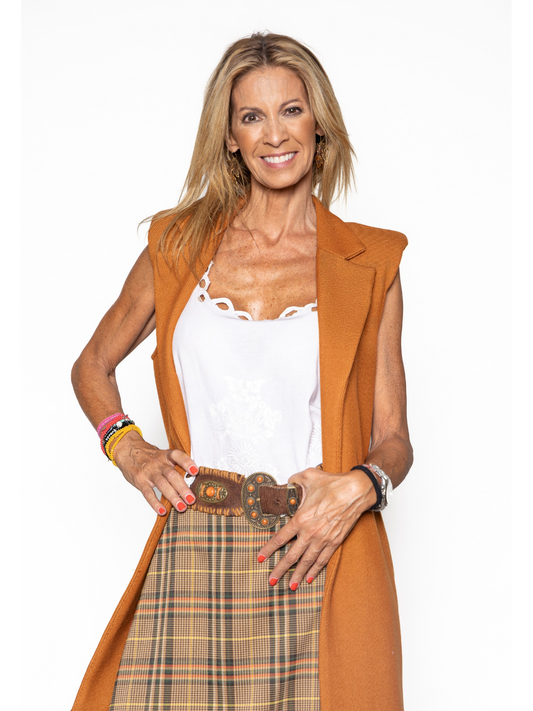Chaleco Man cuadros Camel