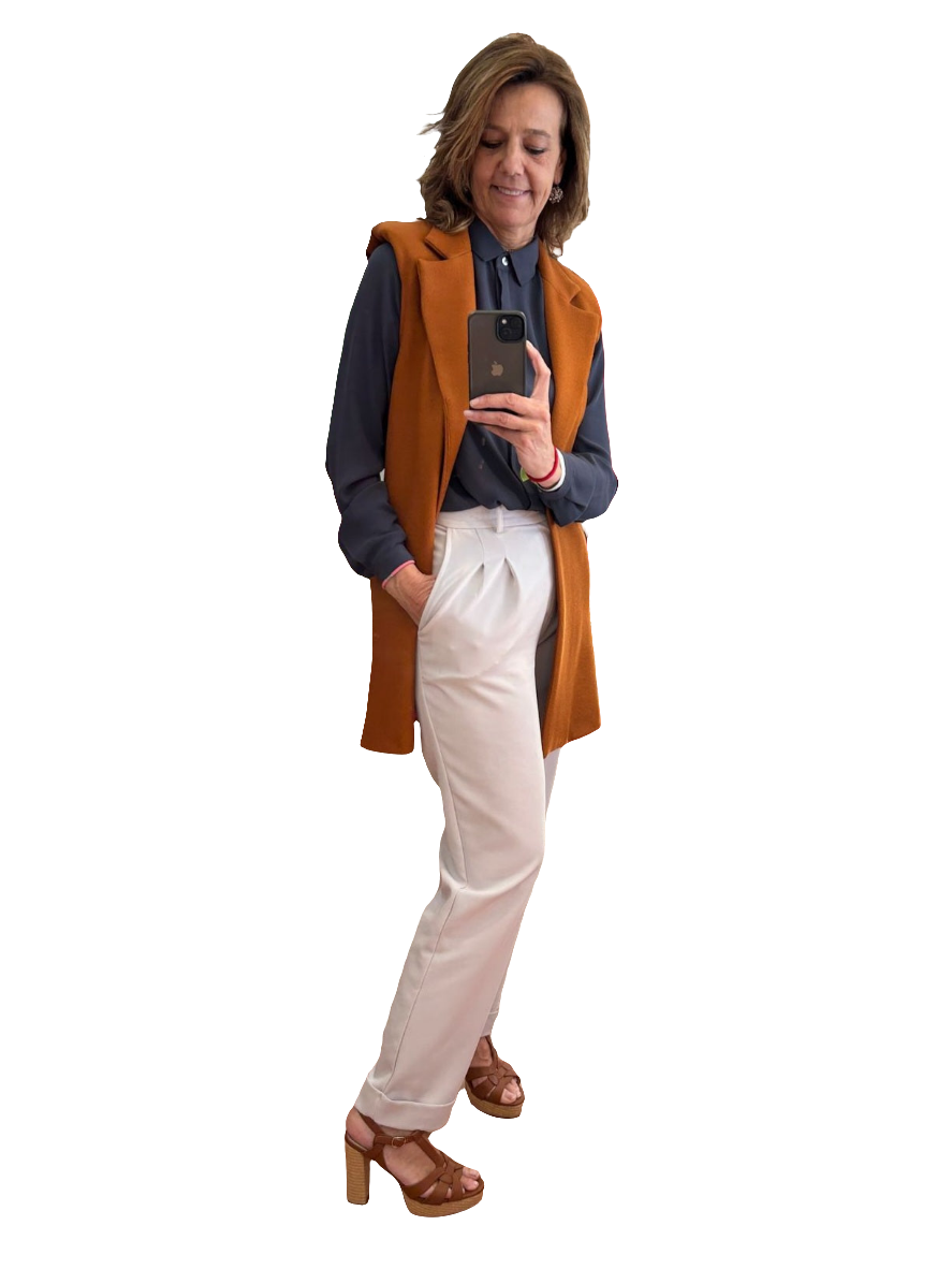 Pantalón de pinzas con vuelta en el bajo y bolsillos laterales.