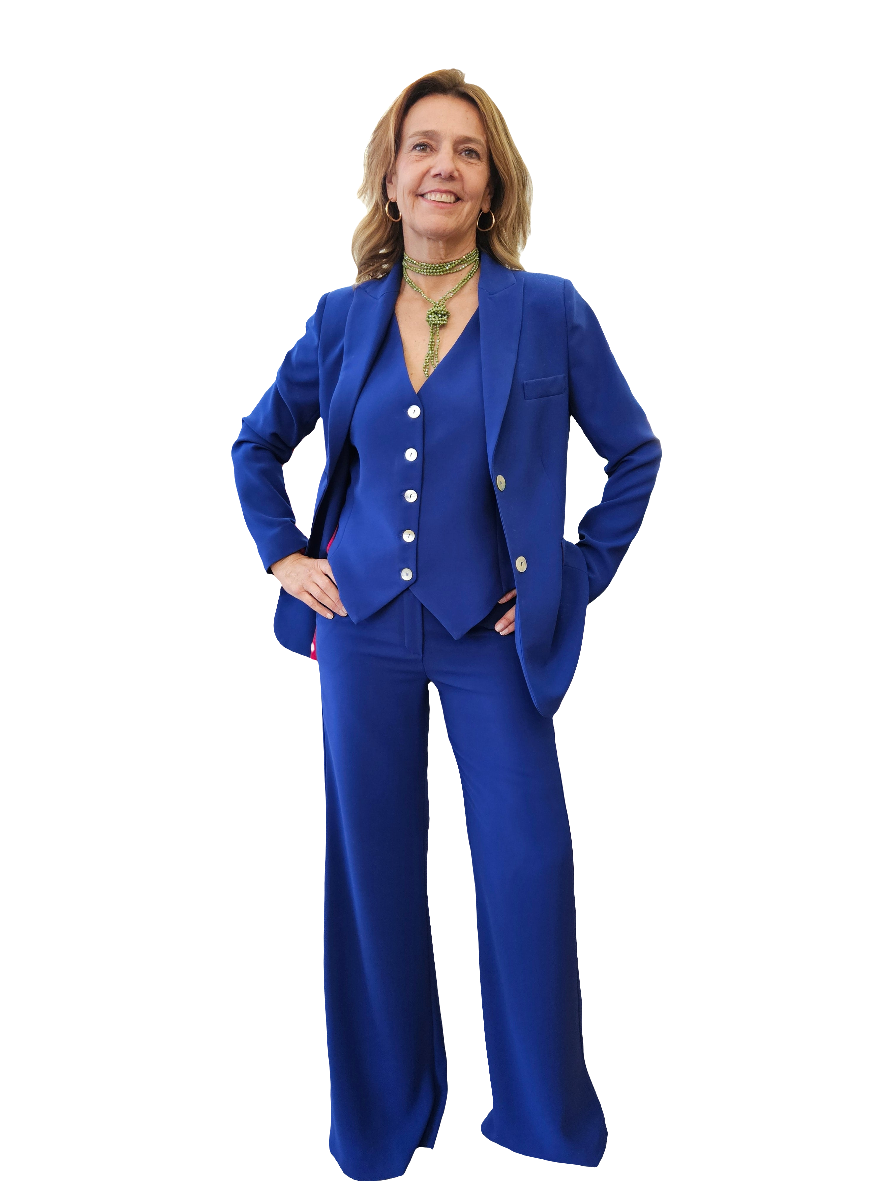 Pantalón de vestir de cintura media y pierna acampanada. Con bolsillos y trabillas en la cintura.